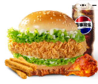 汉堡+霸王鸡条+翅根1+大串1+可乐