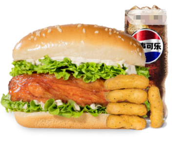 板烧鸡腿堡+黑椒鸡块+可乐